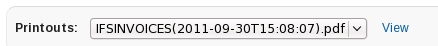 The invoices printouts drop-down lists all such documents for the billing scenario. When you click Fetch Opportunities the list shows past documents created for that scenario. As you process the invoices for your sales, and all or some are processed with the Print billing action, the printouts drop-down list is updated with the document for the last processing batch first in the list. To see a printout document:
